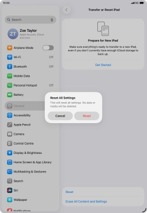 Press Reset. Wait a moment while the factory default settings are restored. Follow the instructions on the screen to set up your tablet and prepare it for use.