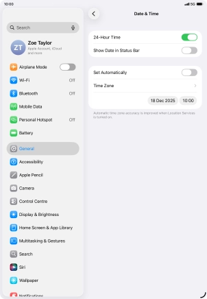 Set date and time on your Apple iPad (11th Generation) iPadOS 26