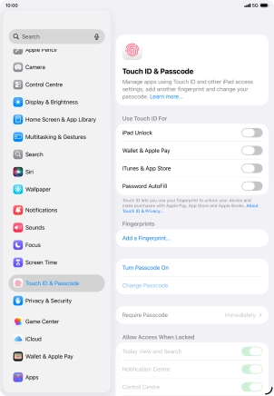 Apple iPad (11th Generation) - Turn use of lock code on or off | Vodafone Ireland