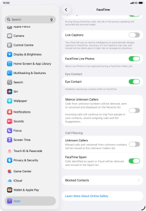 Press the indicator next to "FaceTime" to turn the function on or off.