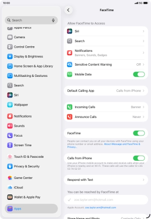 Press the required setting below "Allow FaceTime to Access" and follow the instructions on the screen to allow access for specific apps and functions.