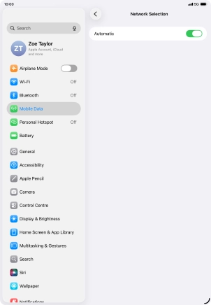 Press the indicator next to "Automatic" to turn automatic network selection on or off.