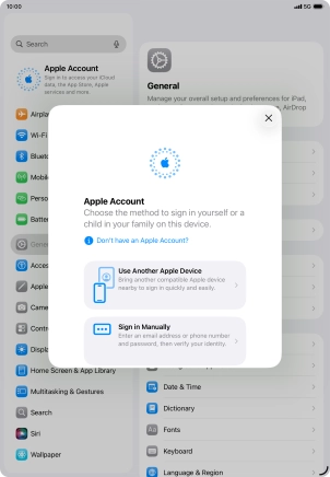 An Apple Account gives you access to a number of services on your tablet such as iCloud, App Store and iTunes. To activate an Apple Account on your tablet you need to set up your tablet for internet.