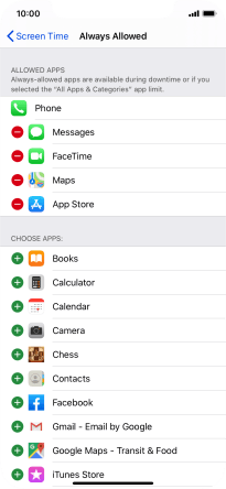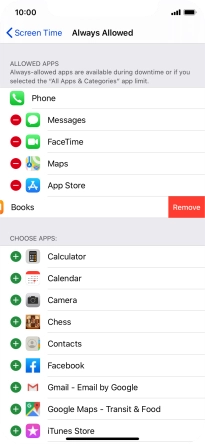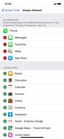 Press the remove icon next to the required app to remove it from the list of allowed apps during Downtime.