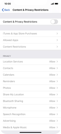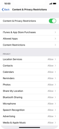 Press the indicator next to "Content & Privacy Restrictions" and follow the instructions on the screen to select settings for content and privacy restrictions.
