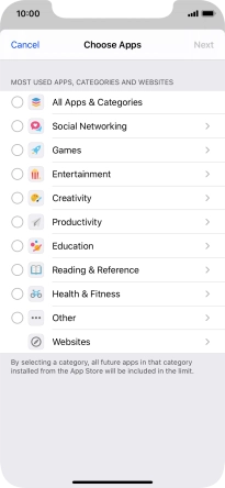 7. Select apps that can be used during Downtime
