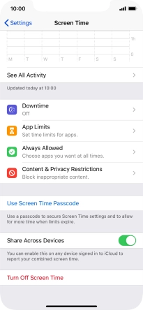 Press the indicator next to "Share Across Devices" and follow the instructions on the screen to turn total Screen Time across all of your devices on or off.