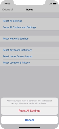 Press Reset All Settings. Wait a moment while the factory default settings are restored. Follow the instructions on the screen to set up your phone and prepare it for use.