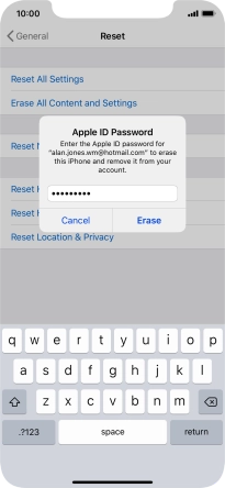 Key in the password for your Apple ID and press Erase. Wait a moment while the factory default settings are restored. Follow the instructions on the screen to set up your phone and prepare it for use.