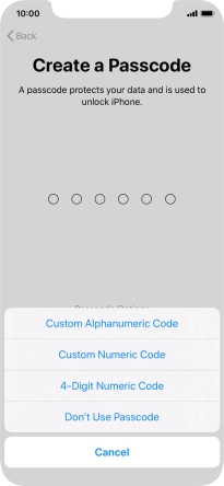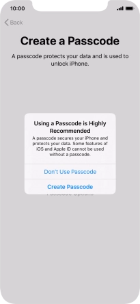 Follow the instructions on the screen to turn on use of phone lock code or press Don't Use Passcode.