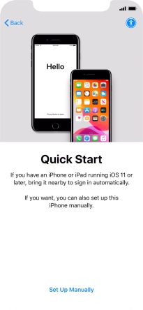 Follow the instructions on the screen to transfer content from another device running iOS 11 or later or press Set Up Manually.