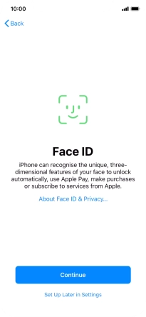 Follow the instructions on the screen to turn on use of Face ID or press Set Up Later in Settings.