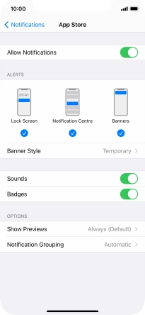 Press the indicator next to "Allow Notifications" to turn notifications for the selected application on or off.