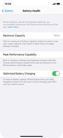 Press the indicator next to "Optimised Battery Charging" to turn the function on or off.