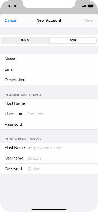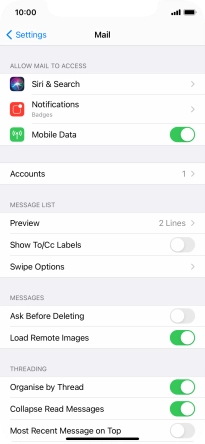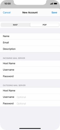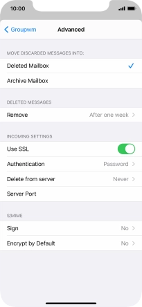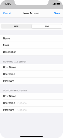 Press the required email account and follow the instructions on the screen to select settings for the specific account.
