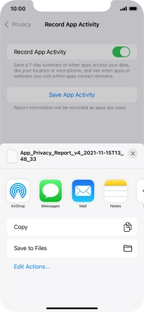 Press the required setting and follow the instructions on the screen to share or save the app activity report.