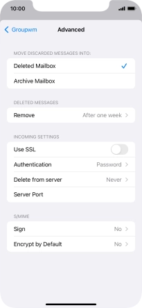Press the required email account and follow the instructions on the screen to select settings for the specific account.