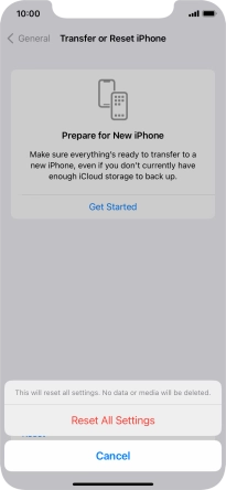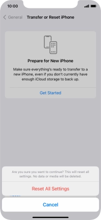 Press Reset All Settings. Wait a moment while the factory default settings are restored. Follow the instructions on the screen to set up your phone and prepare it for use.