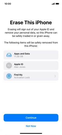 Key in the password for your Apple ID and press Erase iPhone. Wait a moment while the factory default settings are restored. Follow the instructions on the screen to set up your phone and prepare it for use.