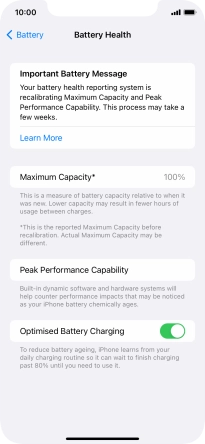 Press the indicator next to "Optimised Battery Charging" to turn the function on or off.