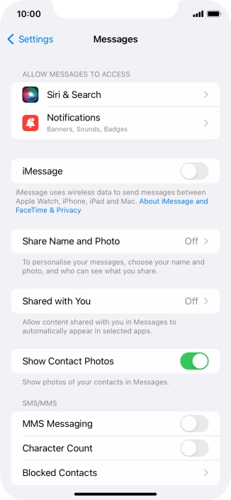 Press the indicator next to "MMS Messaging" to turn on the function.