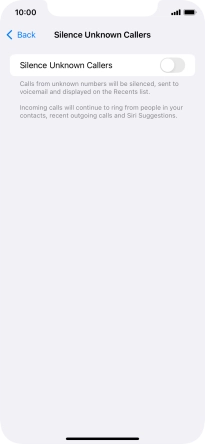 Press the indicator next to "Silence Unknown Callers" to turn the function on or off.
