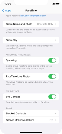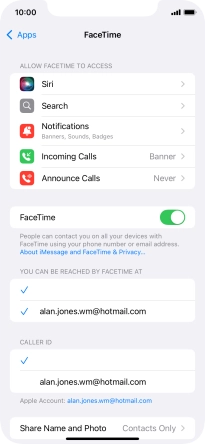 Press the required setting below "YOU CAN BE REACHED BY FACETIME AT".