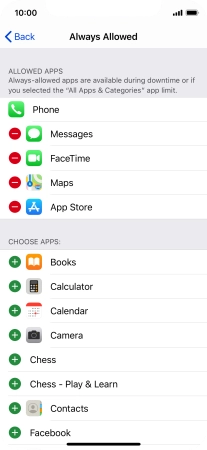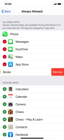 Press the remove icon next to the required app to remove it from the list of allowed apps during Downtime.