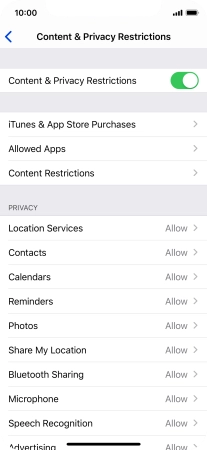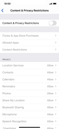 Press the indicator next to "Content & Privacy Restrictions" and follow the instructions on the screen to select settings for content and privacy restrictions.
