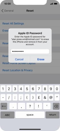 Key in the password for your Apple ID and press Erase. Wait a moment while the factory default settings are restored. Follow the instructions on the screen to set up your phone and prepare it for use.
