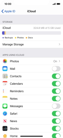 Press the indicator next to "iCloud Drive" to turn file synchronisation on or off.