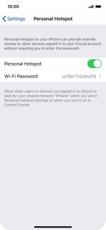 Press the indicator next to "Personal Hotspot" to turn on the function.
