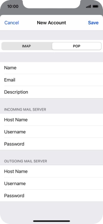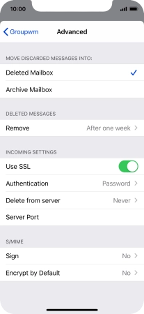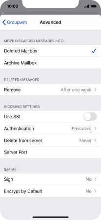 Press the required email account and follow the instructions on the screen to select settings for the specific account.