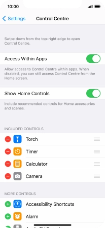 Select settings for Control Centre on your Apple iPhone 11 Pro iOS 14.0