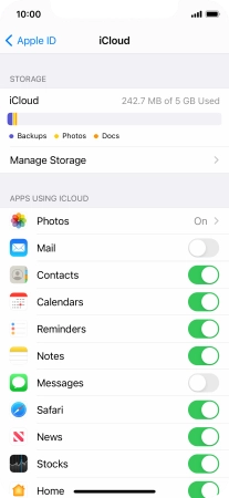Press the indicator next to "iCloud Drive" to turn file synchronisation on or off.