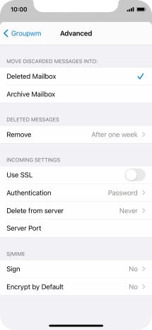 Press the required email account and follow the instructions on the screen to select settings for the specific account.