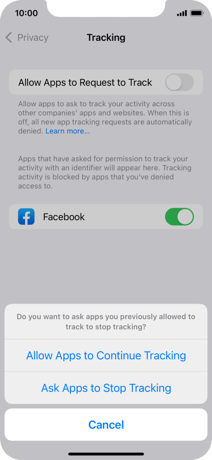 Press the indicator next to "Allow Apps to Request to Track" to turn the function on or off.