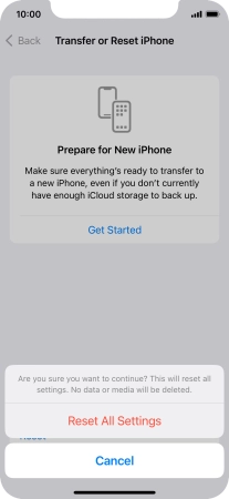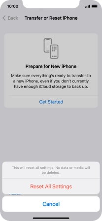 Press Reset All Settings. Wait a moment while the factory default settings are restored. Follow the instructions on the screen to set up your phone and prepare it for use.
