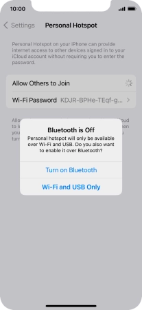 Key in the password for the personal hotspot and establish the connection.