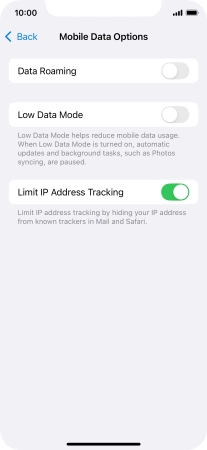 Press the indicator next to "Low Data Mode" to turn the function on or off.