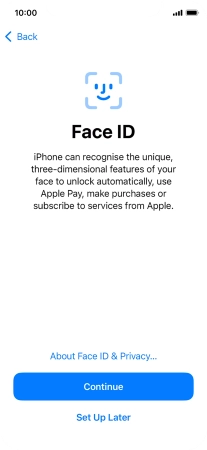 Follow the instructions on the screen to turn on use of Face ID or press Set Up Later.