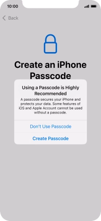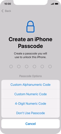 Follow the instructions on the screen to turn on use of phone lock code or press Don't Use Passcode.