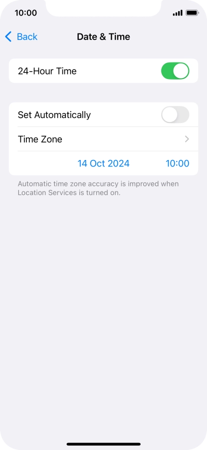 2 Turn on automatic update of time zone, time and date.