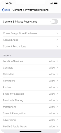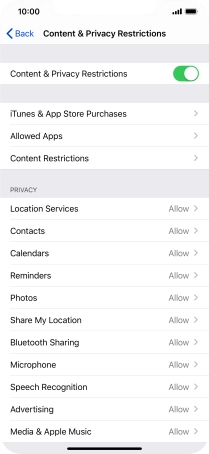 Press the indicator next to "Content & Privacy Restrictions" and follow the instructions on the screen to select settings for content and privacy restrictions.