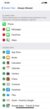 Press the add icon next to the required app to add it to the list of allowed apps during Downtime.
