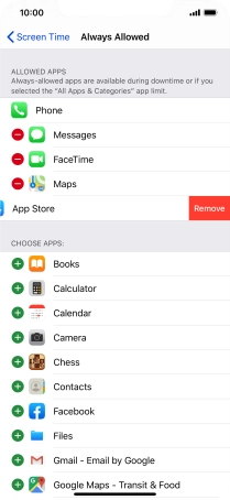 Press the remove icon next to the required app to remove it from the list of allowed apps during Downtime.
