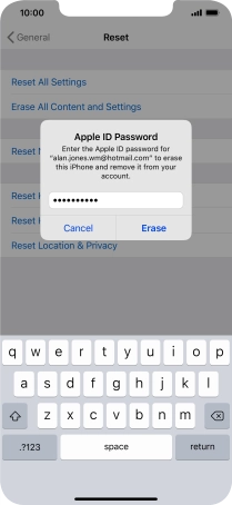 Key in the password for your Apple ID and press Erase. Wait a moment while the factory default settings are restored. Follow the instructions on the screen to set up your phone and prepare it for use.