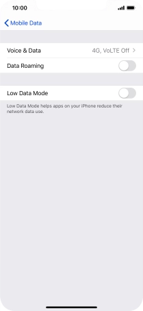 Press the indicator next to "Data Roaming" to turn the function on or off.