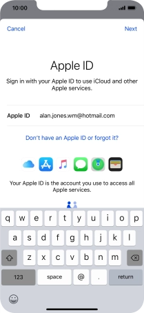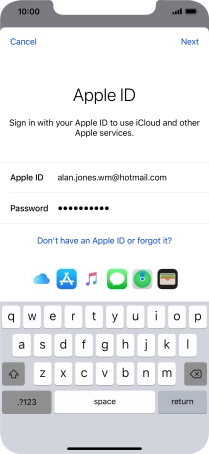 If you don t have an Apple ID, press Don't have an Apple ID or forgot it? and follow the instructions on the screen to create an Apple ID.