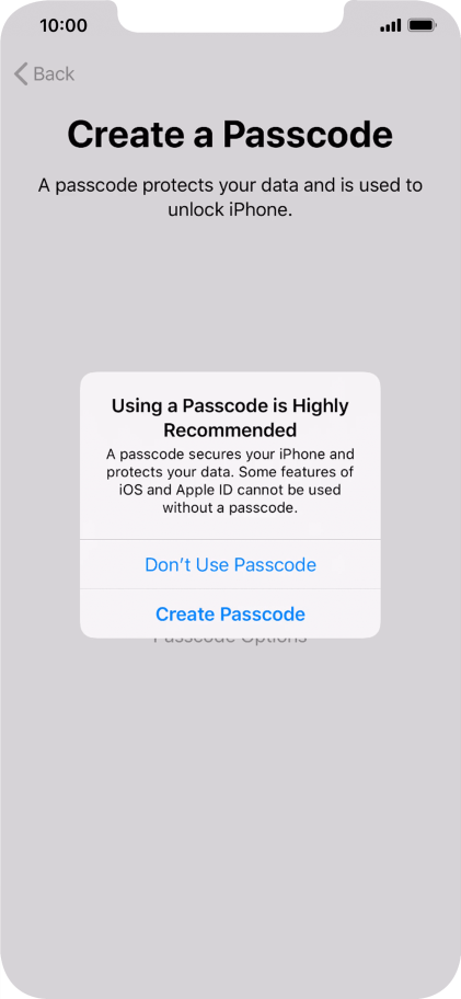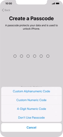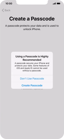 Follow the instructions on the screen to turn on use of phone lock code or press Don't Use Passcode.